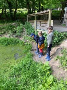 Les enfants ont pu découvrir la mare et ses habitants, travailler la terre glaise et se balader en écoutant une histoire sur les arbres.